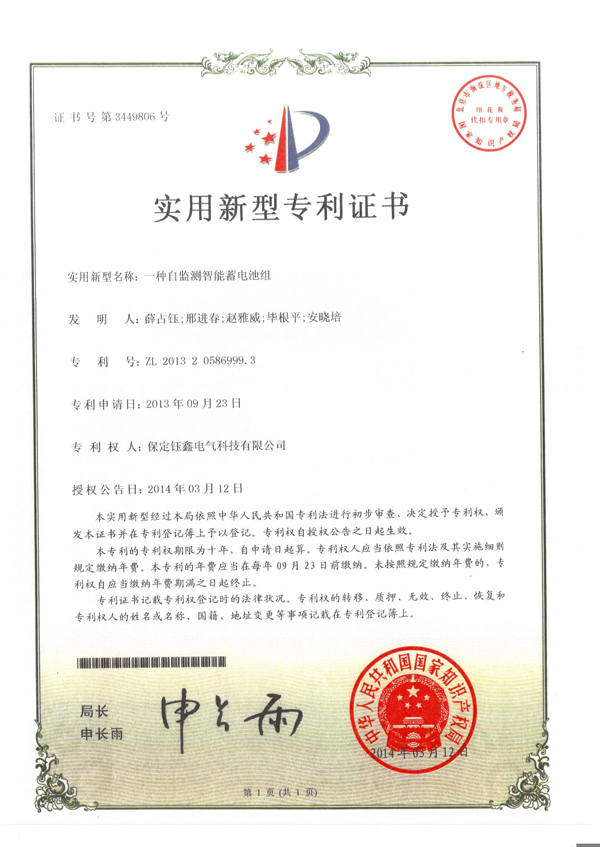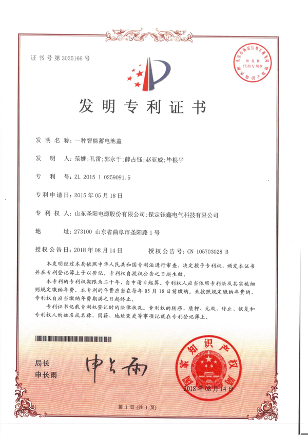 蓄電池端子連接片套件外觀設(shè)計(jì)專(zhuān)利證書(shū) 頭條