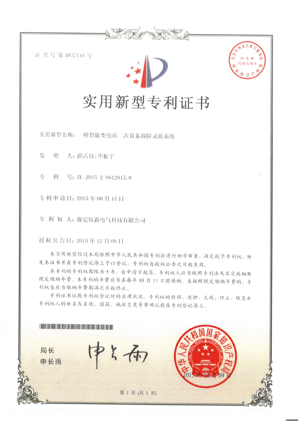 外觀設(shè)計(jì)名稱:蓄電池端子連接片套件,專利號:ZL201530003450.1,專利申請日:2015年01月07日,專利權(quán)人:保定鈺鑫電氣科技有限公司,授權(quán)公告日:2015年07月15日