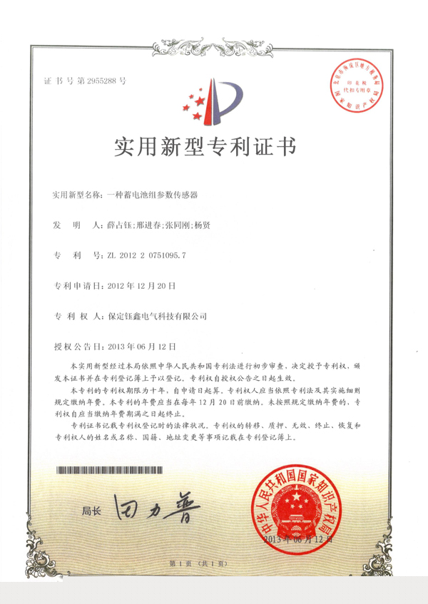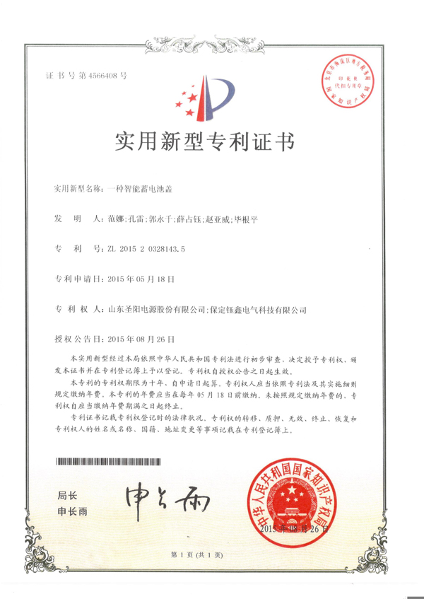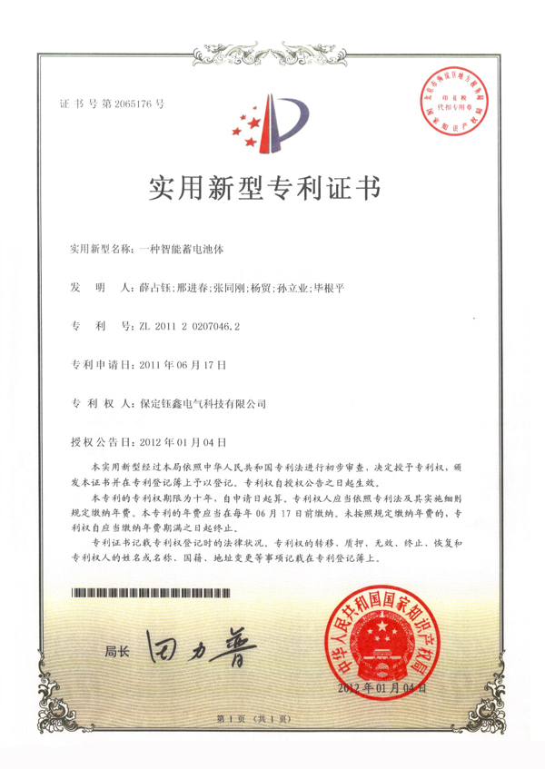 蓄電池端子連接片套件外觀設(shè)計(jì)專利證書 頭條